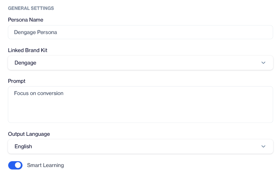 General Settings define the basic identity and behavior of your AI Brand Persona.