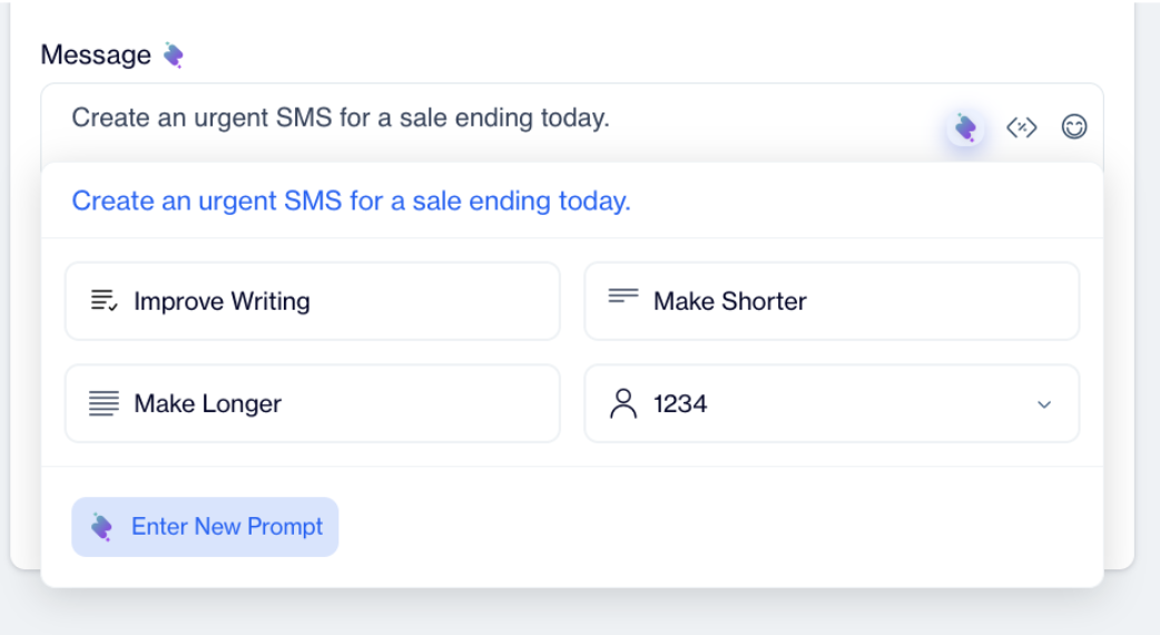 In the AI panel, first enter a prompt. The prompt describes what you want the AI to create, such as the purpose of the message, key points to highlight, or the overall intent. This helps the AI understand your goal before generating content.