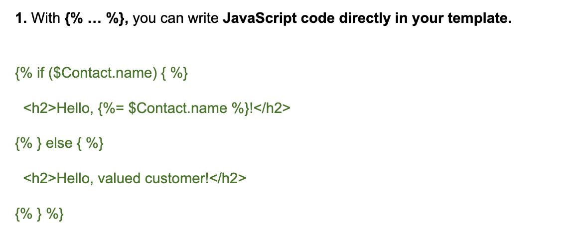 This code checks if the contact has a name field. If the data exists, it shows Hello, [Name]!. If there's no name, it shows Hello, valued customer!.