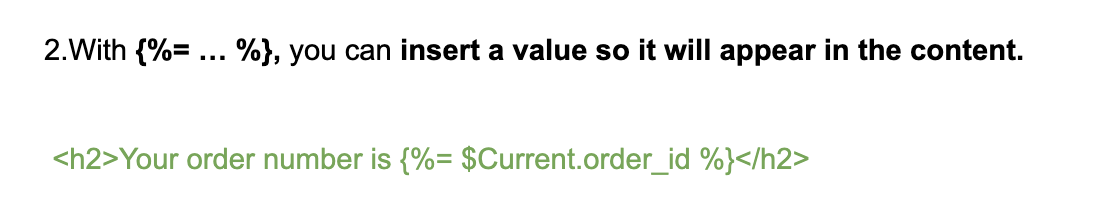 This allows you to dynamically show information such as order numbers, appointment times, or account details in your content.